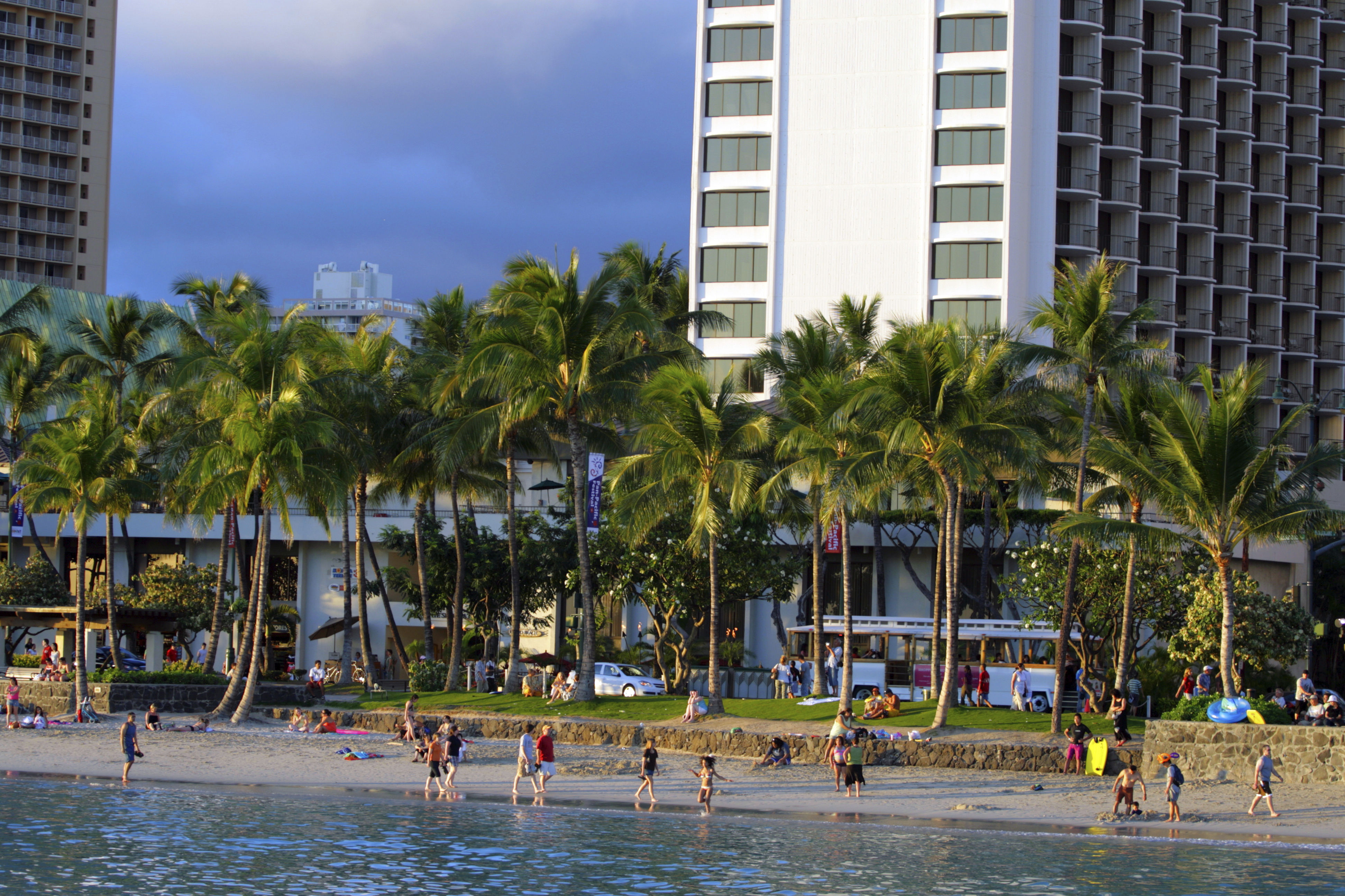 Waikiki is a district of the city of Honolulu, on the island of Oahu in Hawaii. Sandwiched between the Ala Wai Canal and the ocean in the shadow of the towering Diamond Head crater, Waikiki is noted for being the tourist center of the Hawaiian Islands.